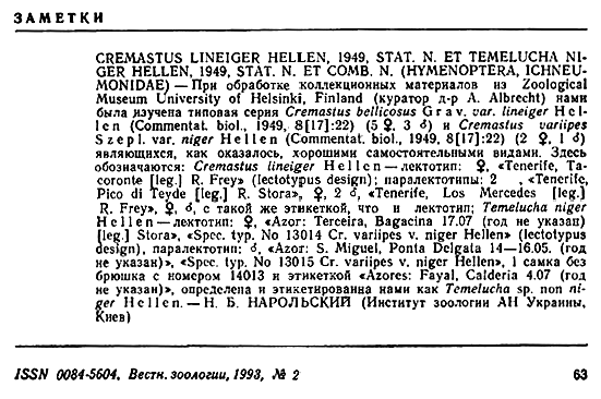 Vestnik Zoologii, 1993, N2, P.63 (Note) |
