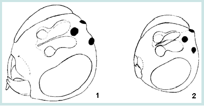 Hot Key: Frons with groove and: 1 - N.tobiasi m. with keel, 2 - N.kotenkoi m. with elevated keel |